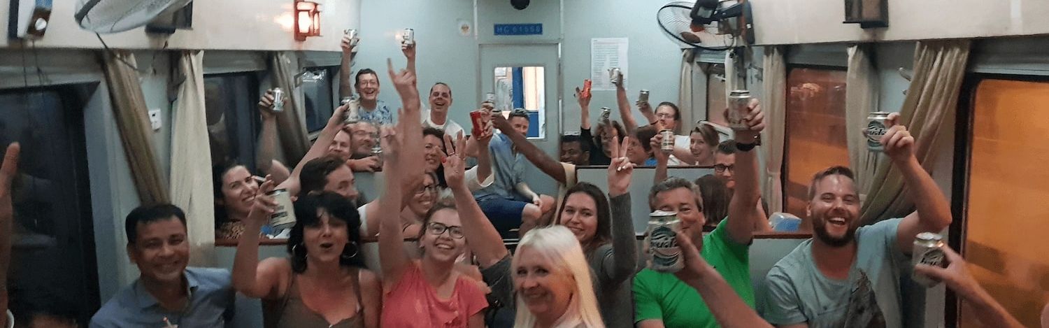Onze chauffeur bracht ons vervolgens weer terug naar Hanoi waar we met de nachttrein naar Hue zouden afreizen. De nachttrein was misschien wel één van de gaafste momenten van deze reis. We gingen met z’n allen naar de restauratiewagon en dat werd de Crusj Disco. Eén van de reizigers had led-verlichting (!!) en een stroboscoop (!!!!) mee, dit in combinatie met twee grote JBL-boxen zorgde voor een rijdend feestje met hilarische taferelen. Met name de verbaasde gezichten van backpackers die op een tussenliggend station op de trein stonden te wachten waren onvergetelijk.