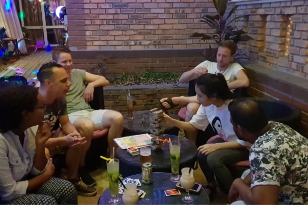 Om negen uur ’s ochtends stond het water op sommige plekken tot je middel, maar drie uur later was het helemaal gezakt en konden we weer terug naar het fantastische Nha Trang. Gelukkig hadden we een leuke kroeg gevonden, Crazy Kim. In dit prachtige etablissement hadden ze veel verschillende spelmogelijkheden; we konden kiezen uit poolen, vier-op-een-rij en Djenga. Een kakkerlak hield ons af en toe gezelschap dus het was weer een onvergetelijke avond!