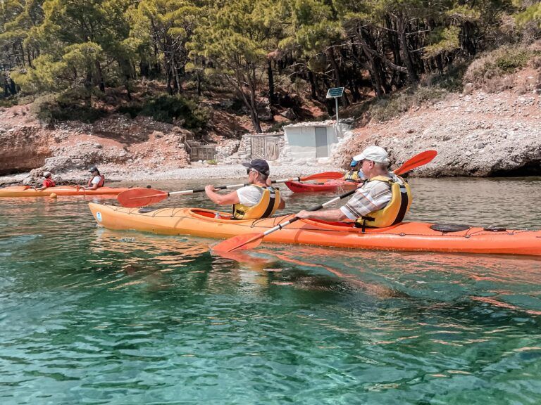 Samen met gids Joan trekken we eropuit voor een actieve dag op het water. Afhankelijk van het weer zoeken we de mooiste baai van het eiland op. Daar krijg je uitleg en stap je met z’n tweeën in een kajak om langs de kust te peddelen. Onderweg stoppen we regelmatig om te zwemmen, te snorkelen en van het uitzicht te genieten. Op een rustig strandje staat een heerlijke lunch voor ons klaar, waarna we op ons gemak terugkeren naar het hotel — een perfecte combinatie van actie en ontspanning!Kokkari by night