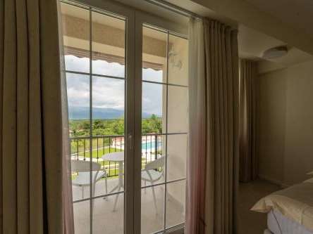 Veel kamers hebben een balkon of terras met uitzicht op de tuin, het zwembad of de bergen. Hier kun je in alle rust wakker worden met het geluid van de natuur op de achtergrond. Het zachte beddengoed en de comfortabele matrassen zorgen voor een heerlijke nachtrust, zodat je elke dag vol energie begint.