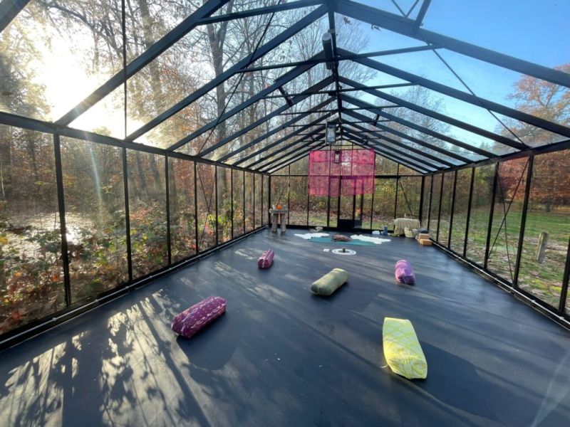 Stel je voor: je rolt je yogamat uit in een lichte, open ruimte, omringd door groen. Het daglicht stroomt naar binnen, de natuur ligt letterlijk aan je voeten, en de kas biedt een heerlijk gevoel van ruimte en rust. Je ademt de frisse lucht in, hoort de kalmerende natuurgeluiden en voelt hoe je langzaam helemaal tot jezelf komt. Hier, midden in de prachtige Veluwse natuur, is yoga meer dan een oefening – het is een moment van pure ontspanning en diepe verbinding met jezelf en je omgeving. Even alles loslaten, weg van de dagelijkse drukte, en volledig opgaan in het hier en nu.