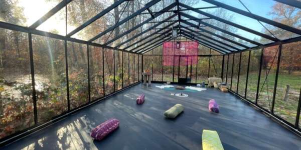 Yoga in een glazen kas is een unieke ervaring op zich!